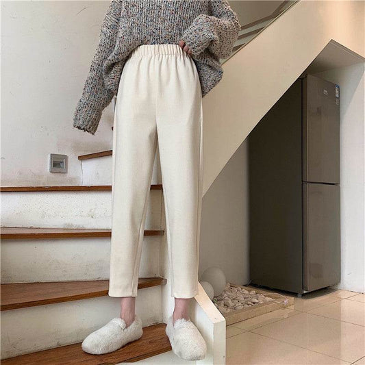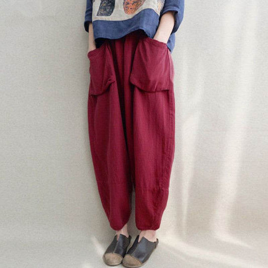 Women Autumn Elastic Waist Solid Pockets Harem Pants Cotton Linen Loose Long Capris Pantalon Trousers Plus Size