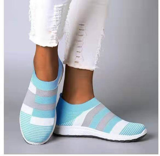 Casual Ladies Shoes Breathable Women Flying Knit Sports Shoes Flat Shoes - Mubimart