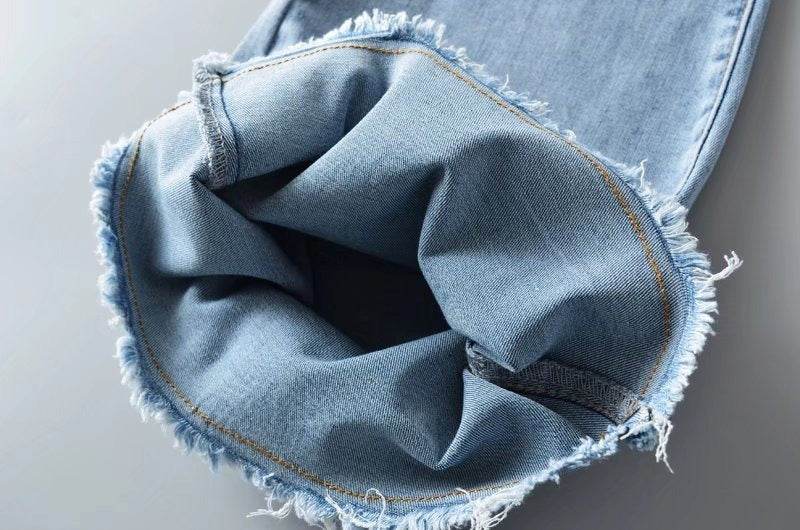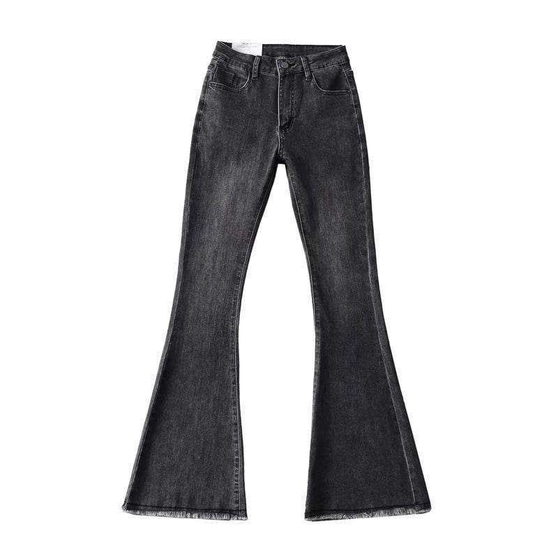 Autumn And Winter Fashion Small High Waist Raw Hem Jeans Retro Distressed Small Man Stretchy Wide-leg Slim Flare Pants - Mubimart