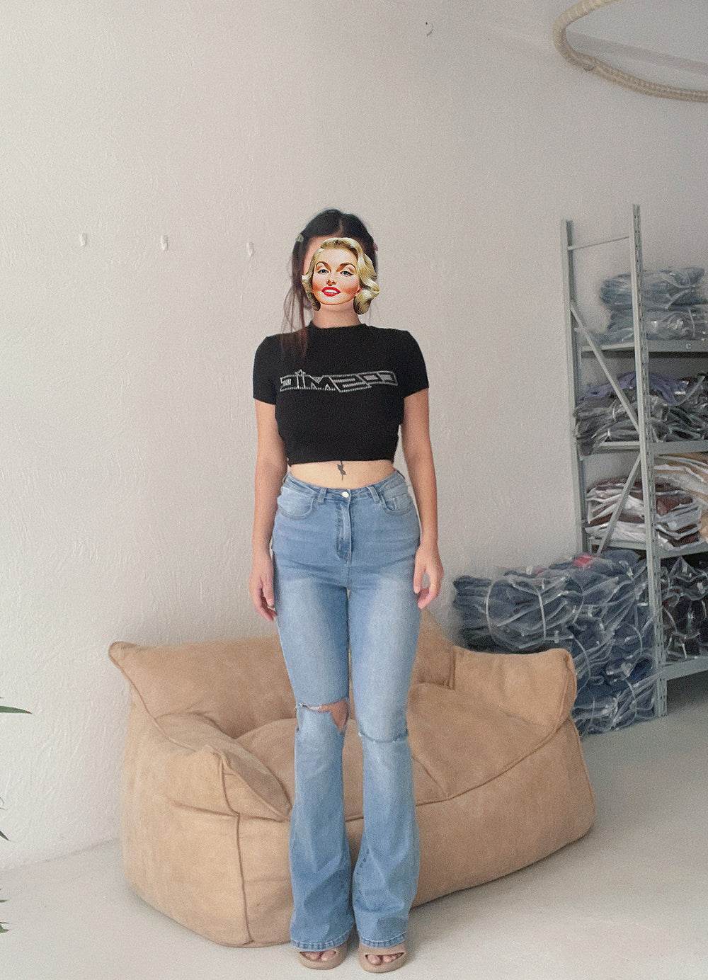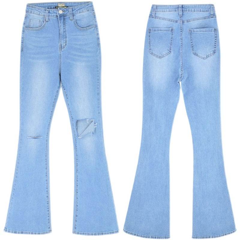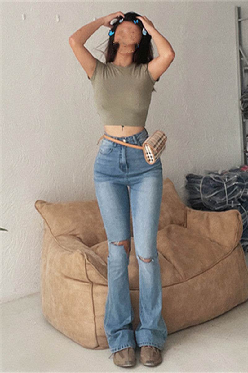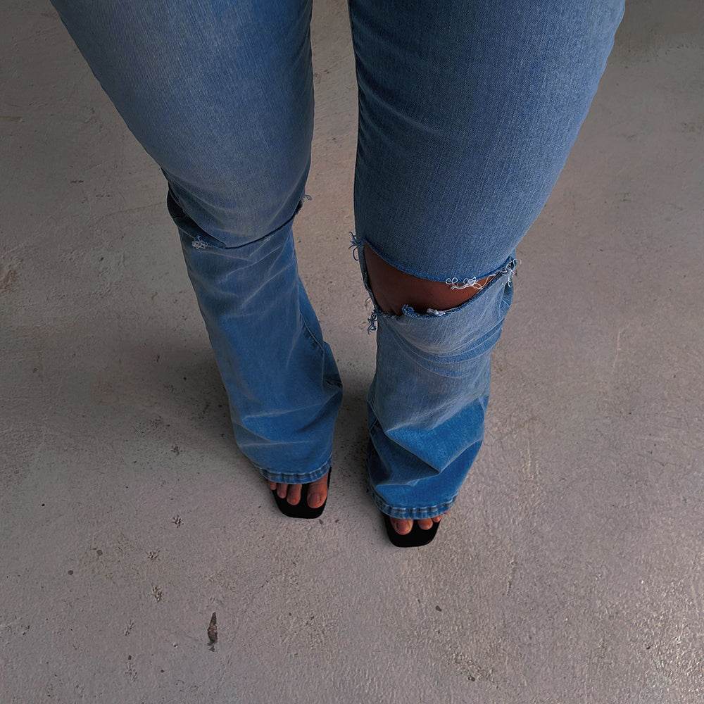 Irregular Hole Super High-rise Straight-leg Micro-flare Jeans