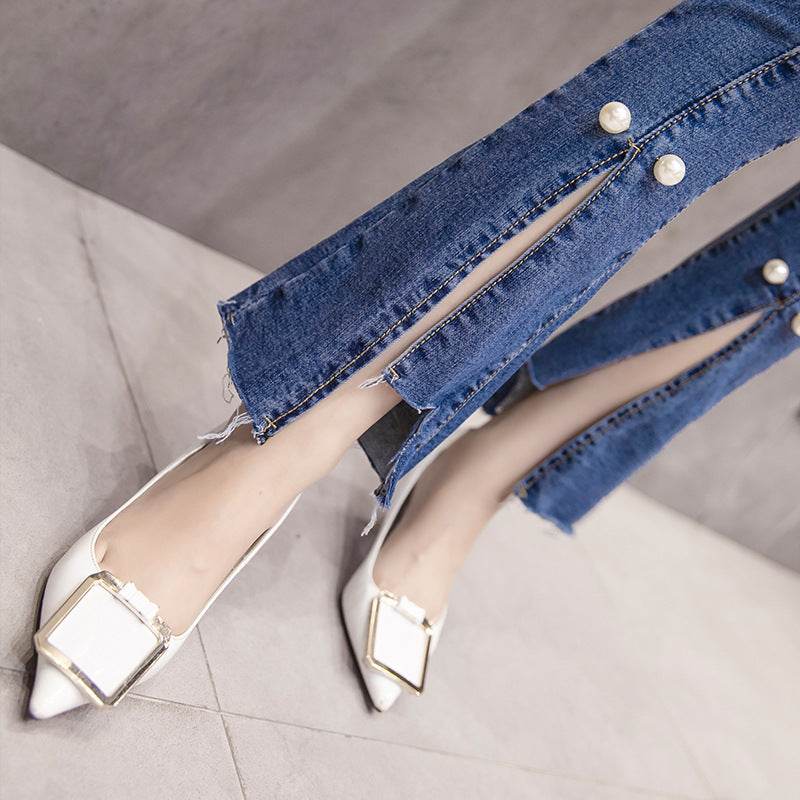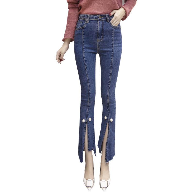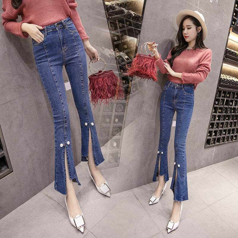 Slit Cropped Micro-flare Jeans Women Slim Slim Straight-leg Pants Trousers
