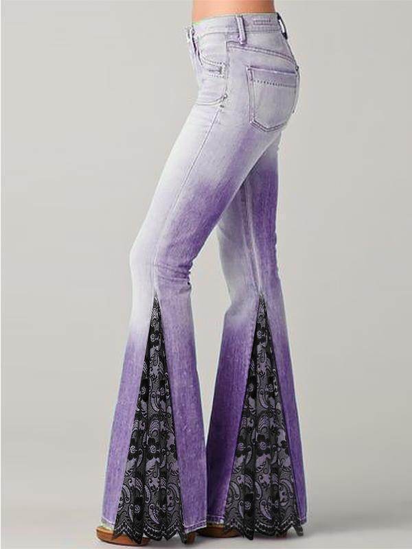 Temperament Commuter Floral Print Panelled Flare Jeans