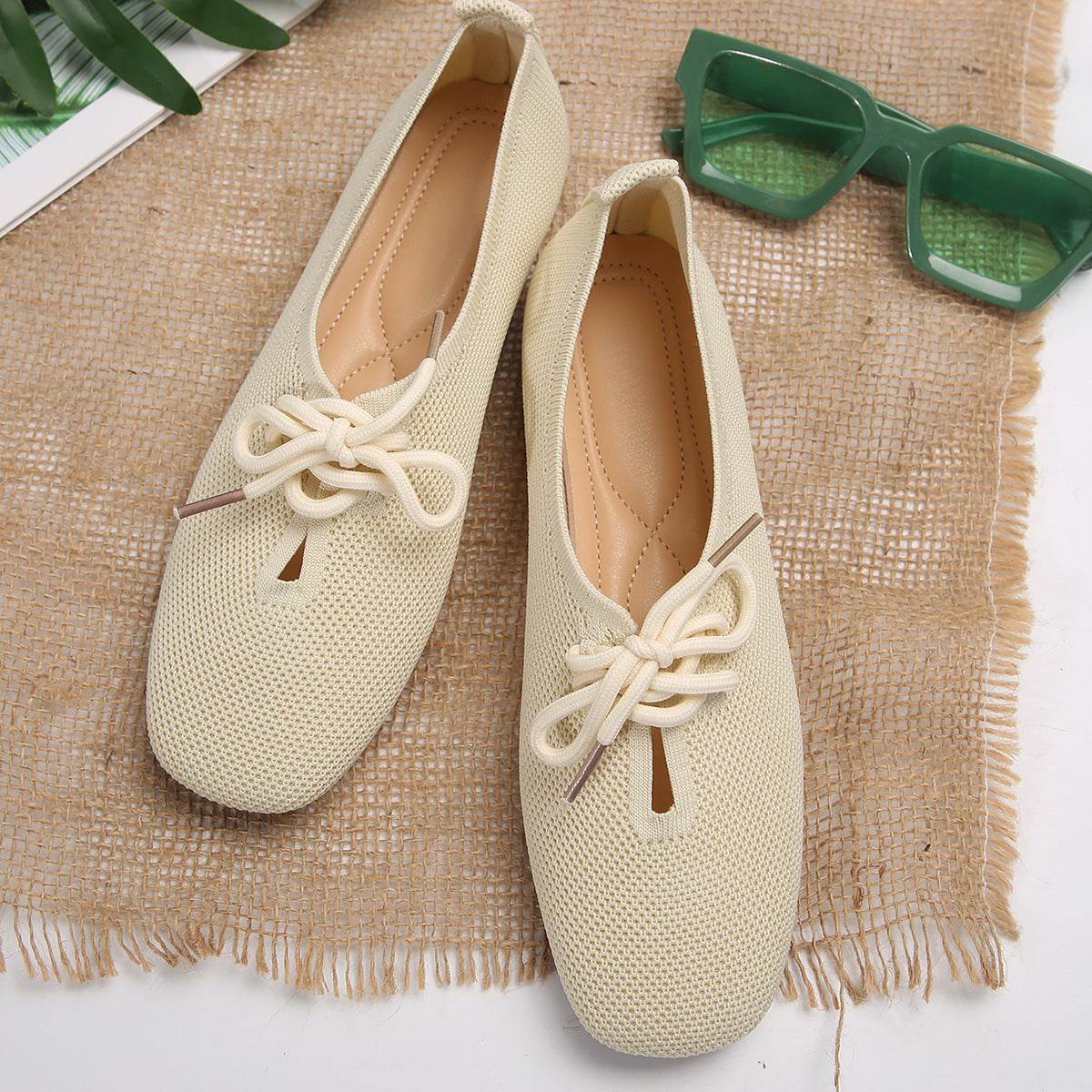 Casual Lace-up Mesh Flats Shoes Women Fashion Solid Color Loafers Lazy Shoes - Mubimart