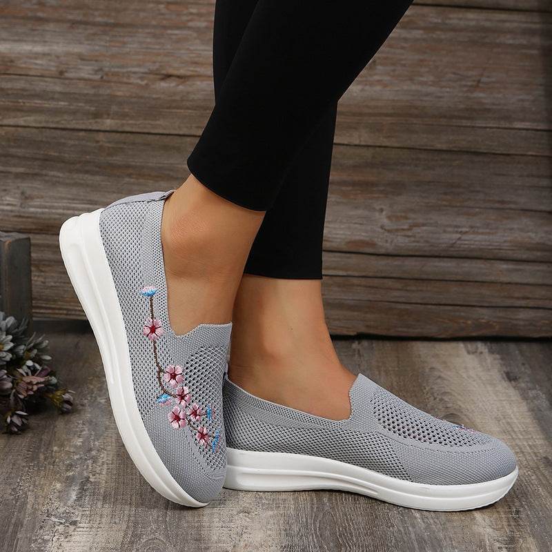 Loafers Women Flowers Embroidery Shoes Breathable Mesh Flats