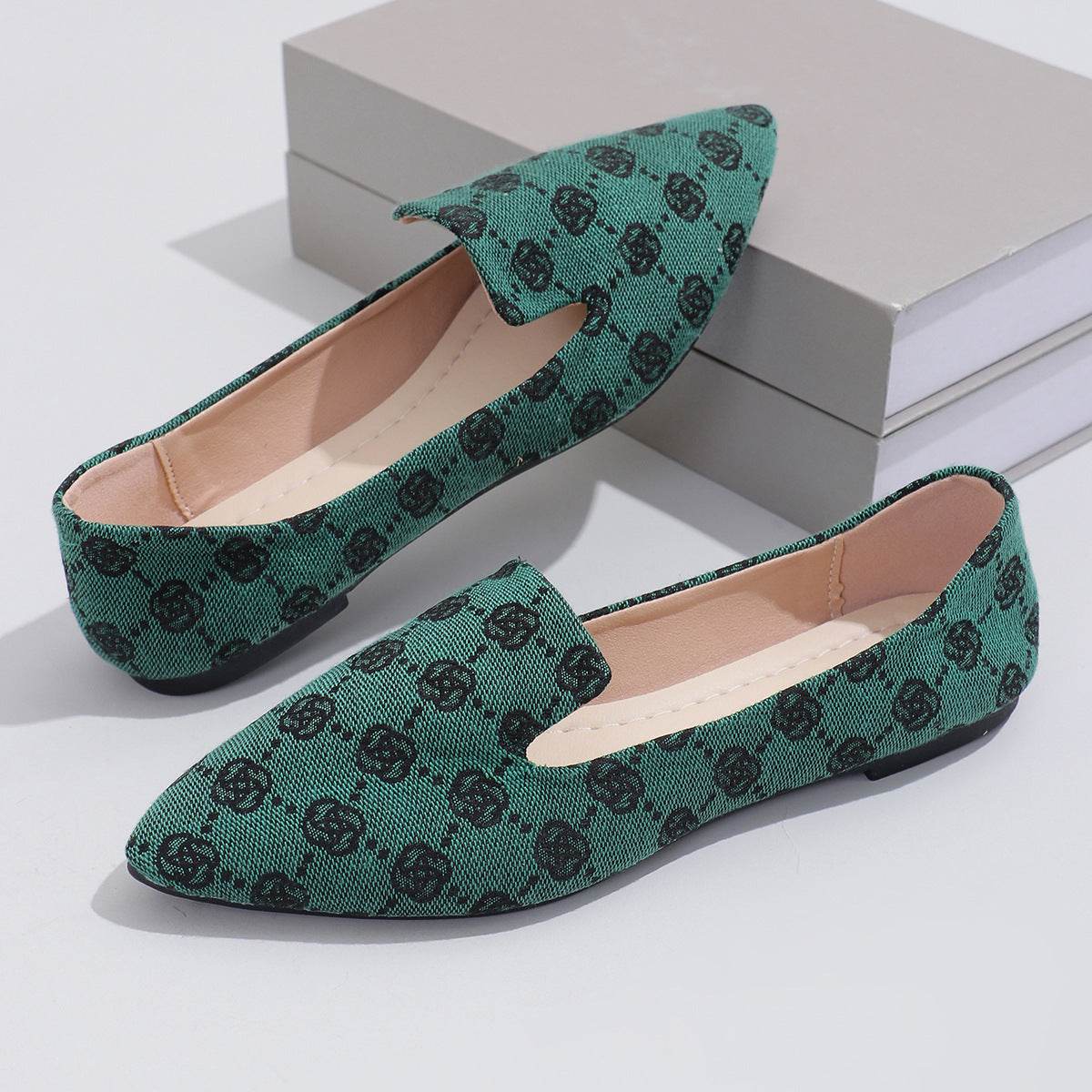 Rose Print Flats Shoes Fashion Casual Pointed Toe Canvas Loafers Lazy Shoes For Women