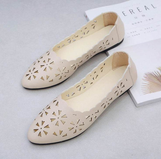 New Arrival Women Flats Shoes Flat Flat Heel Hollow Out Flower Shape Nude Shoes Pointed Toe Shoes zapatos mujer - Mubimart