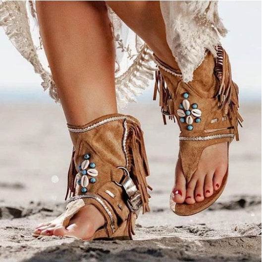 Leopard Fringe Flip Flops