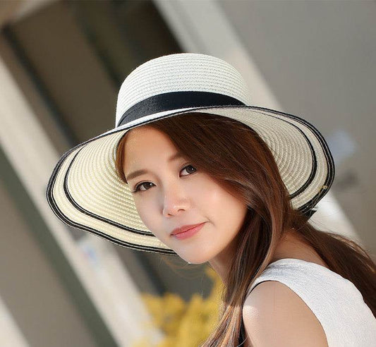 Sun Hat Big Black Bow Summer Hats For Women Foldable Straw Beach Panama Hat Visor Wide Brim Femme Female New