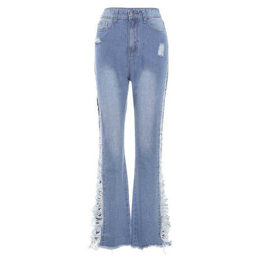 Fashion Ripped Casual Pants Bag Hip Contrast Frosted Bootcut Jeans - Mubimart