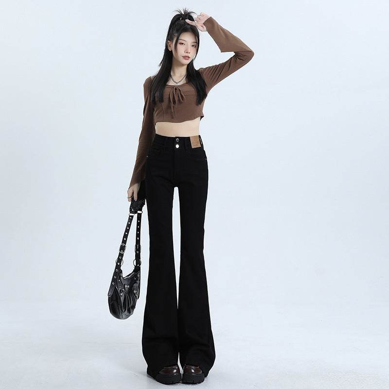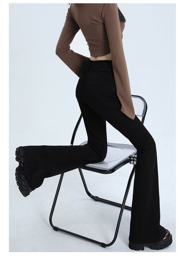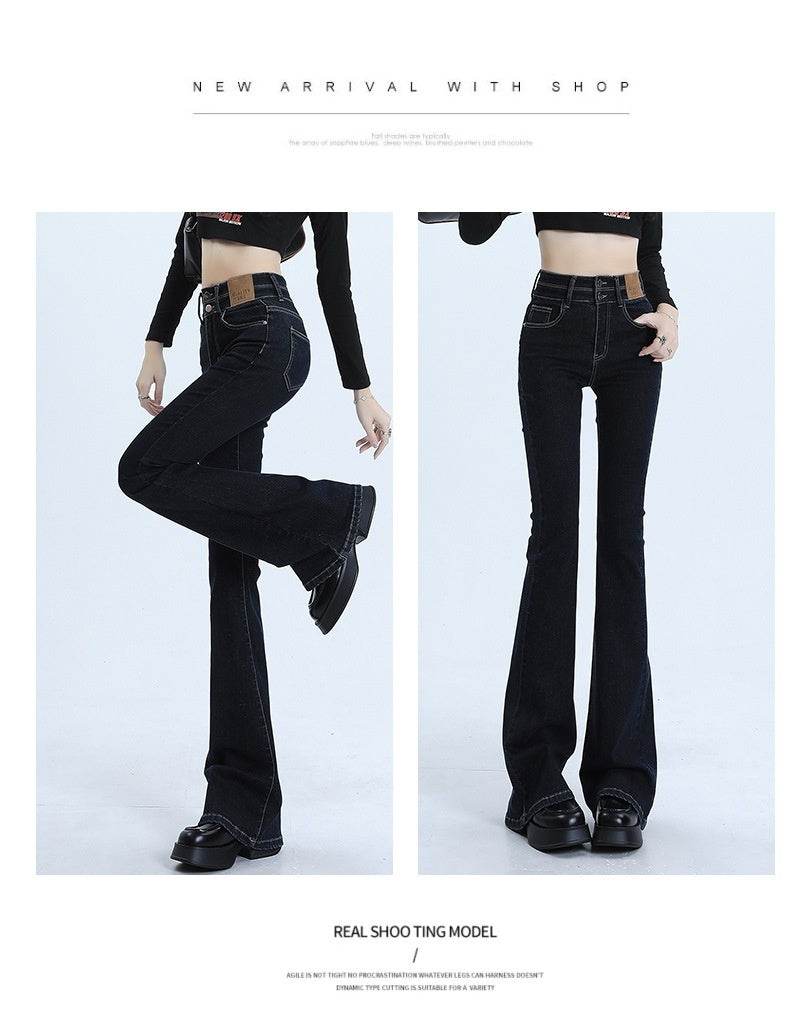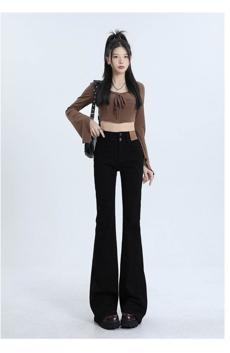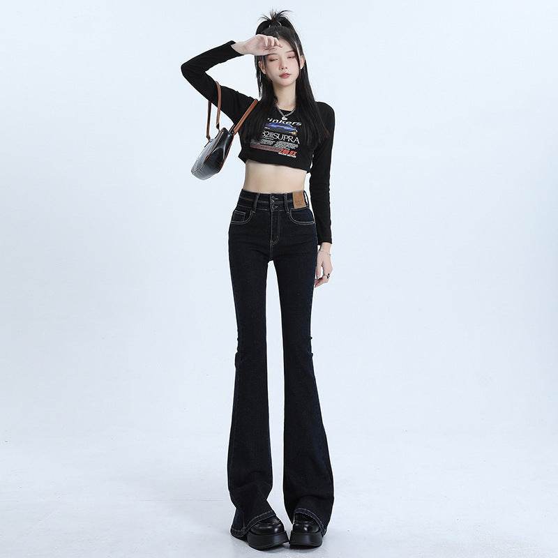 High Waist Slimming Hot Girl Double Buckle Slightly Flared Jeans Women