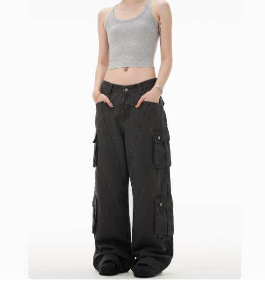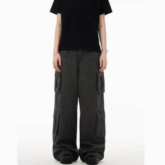 Retro Deconstruction Cargo Jeans Men And Women Loose Casual