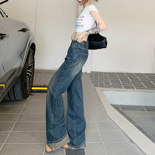 Women's Summer Loose Straight Flared Jeans - Mubimart