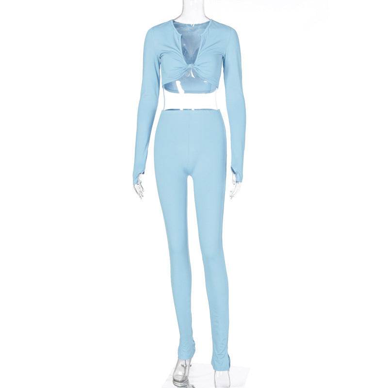 FQLWL Casual Summer 2 Two Piece Set Women Pink Outfit Long Sleeve Crop Top Leggings Women Joggers Matching Sets Ladies Tracksuit - Mubimart