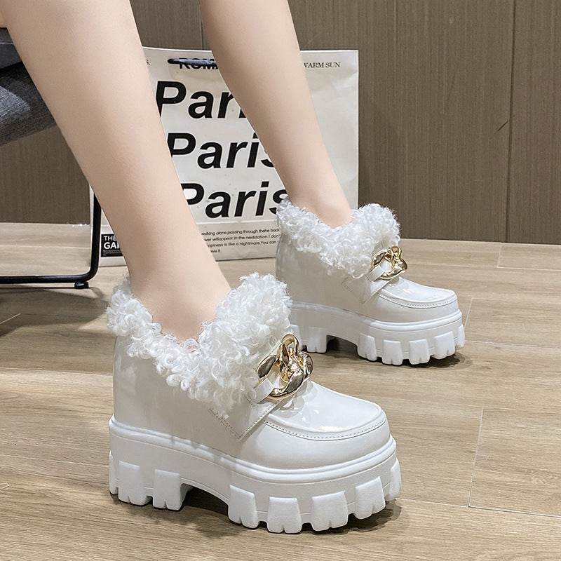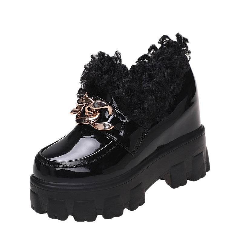 Fashion Plus Fluffy Mouth Thick Soled High Loafers Women