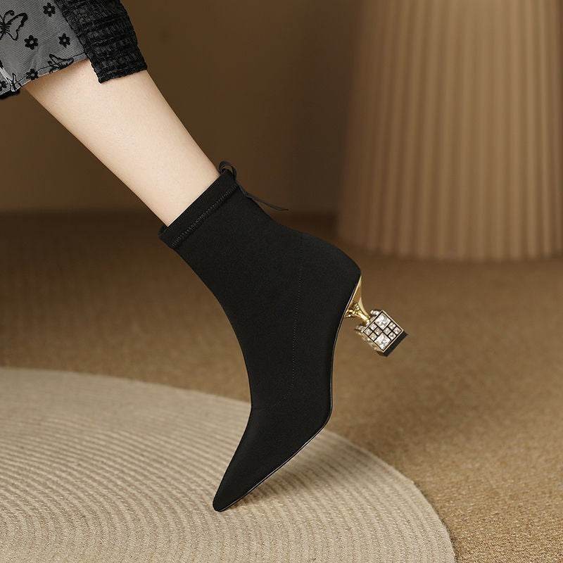 Women Pointed Toe Mid-calf High-heeled Skinny Boots