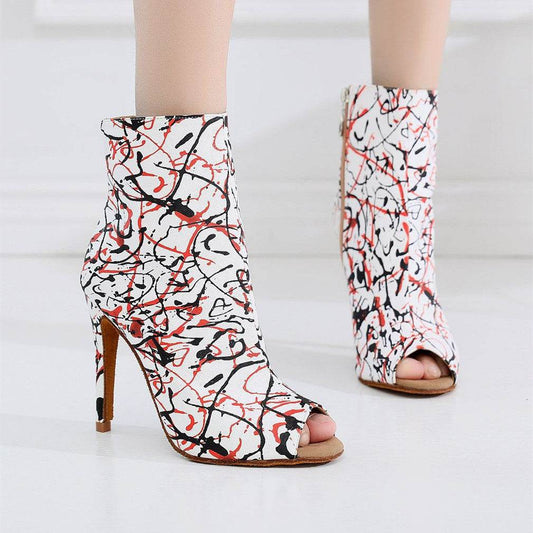 Women's Adult High Heel Stage Boots Graffiti Mid-calf