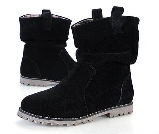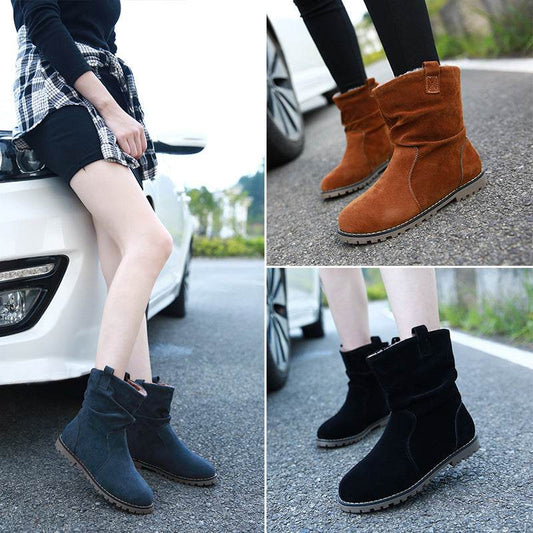Lady's Mid-calf Boots Round Toe Wrinkled Boots Big Code - Mubimart