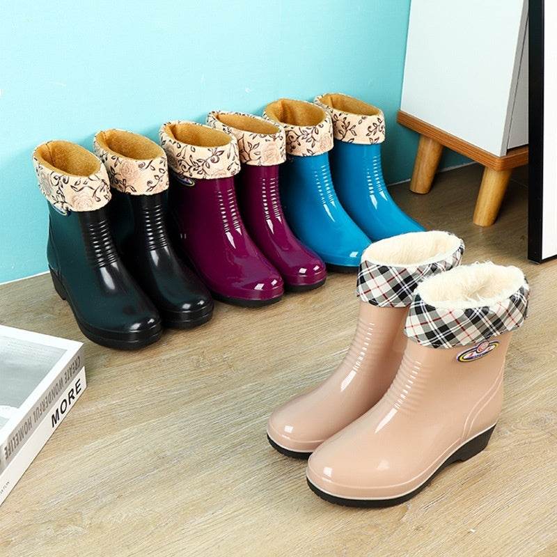 Work Wear Waterproof Fleece-lined Stylish Rain Boots Women