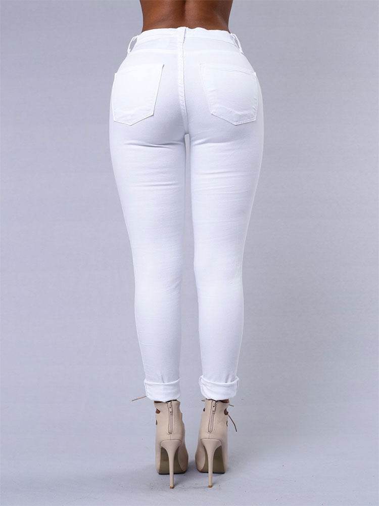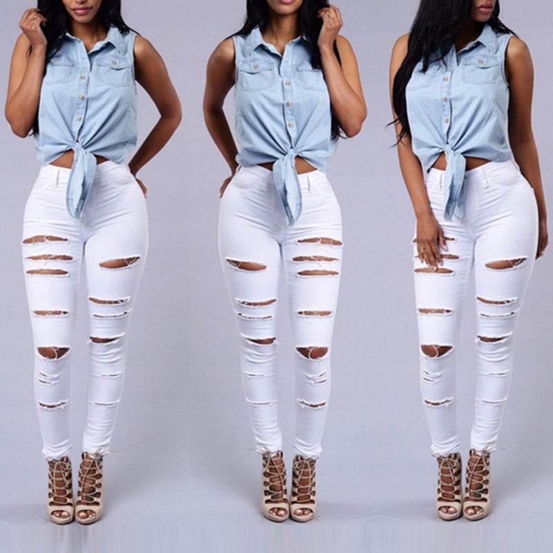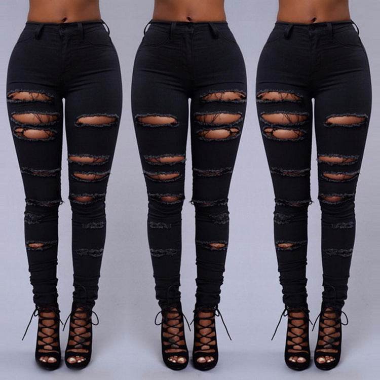 High Quality Women Casual Hole Jeans High Waist Skinny Pant Pencil Jeans Ripped Sexy Female Girls Trousers Denim Jeans