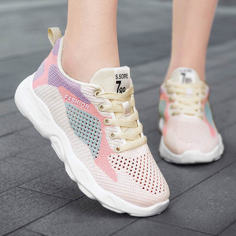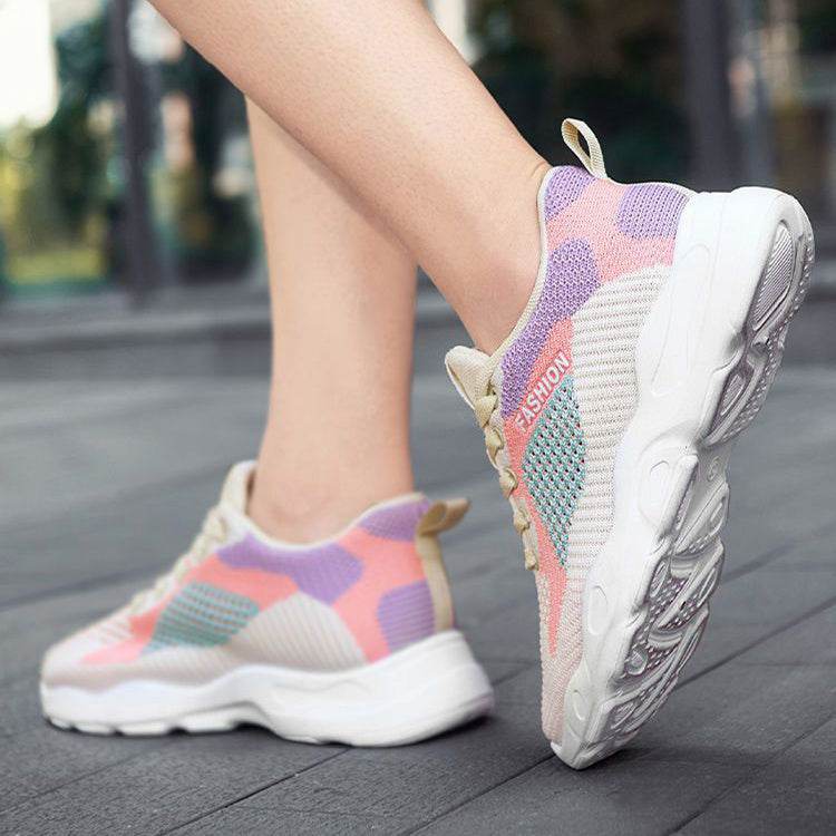 Casual Colorblock Lace-up Sneakers Women Versatile Breathable Lightweight Walking Running Shoes - Mubimart