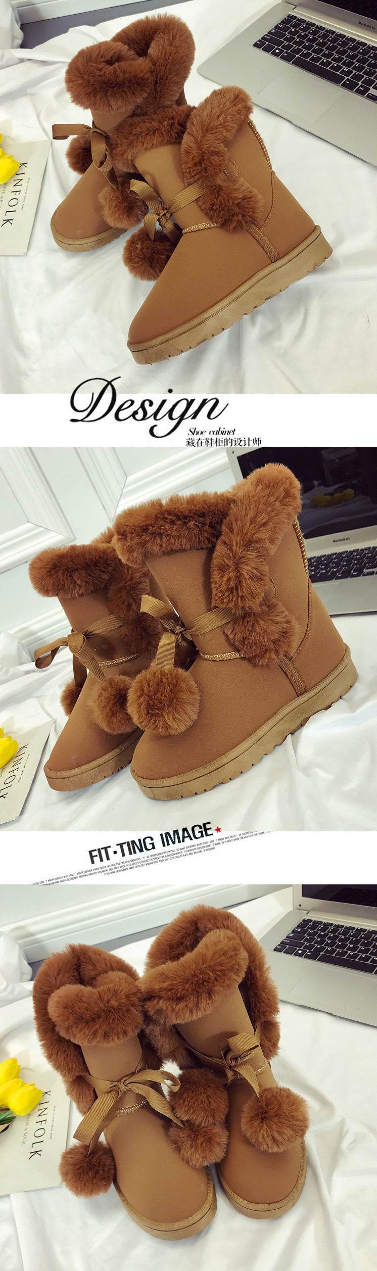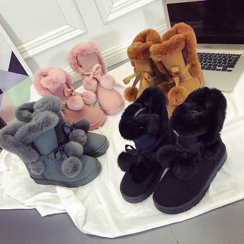 Winter New Snow Boots Women's Mid-calf Flip Ball