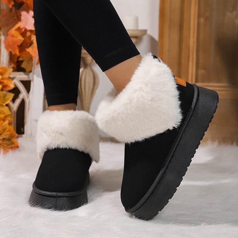 Winter Plush Snow Boots Fashion Round Toe Flat Thickened Suede Cotton Shoes For Women Casual Warm Short Boot