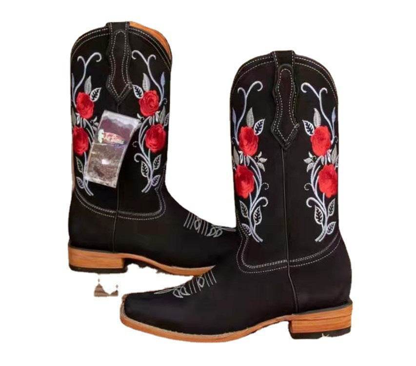 Square Toe Mid Heel Square Heel Rose Fashion Boots