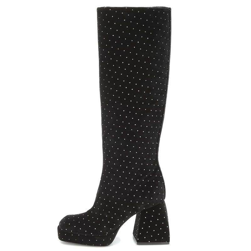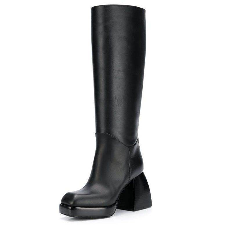 Thick High-heeled Platform Catwalk Boots, Leather Square Toe Boots
