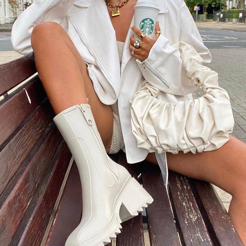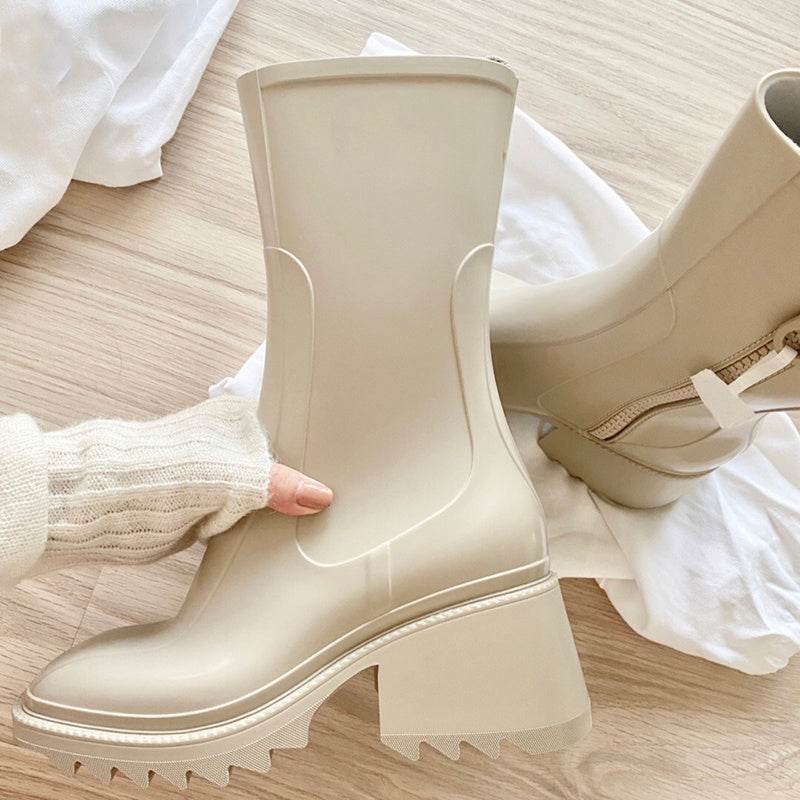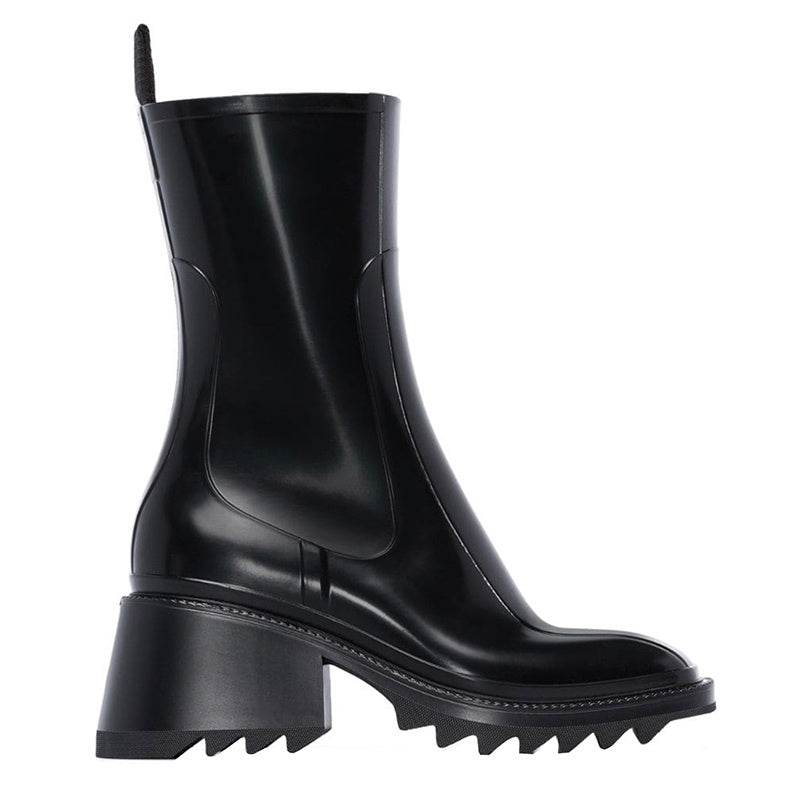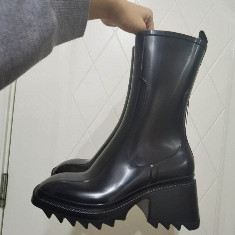 Thick-soled block heel square toe boots
