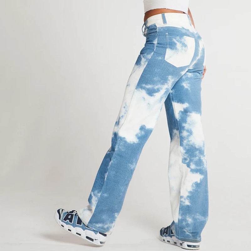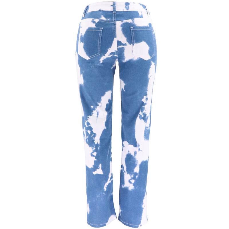 Tie Dye Print Straight Leg Jeans For Women - Mubimart