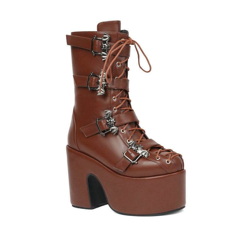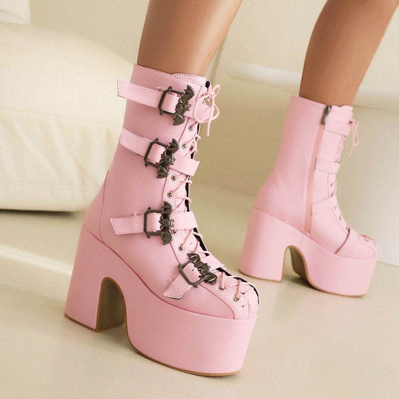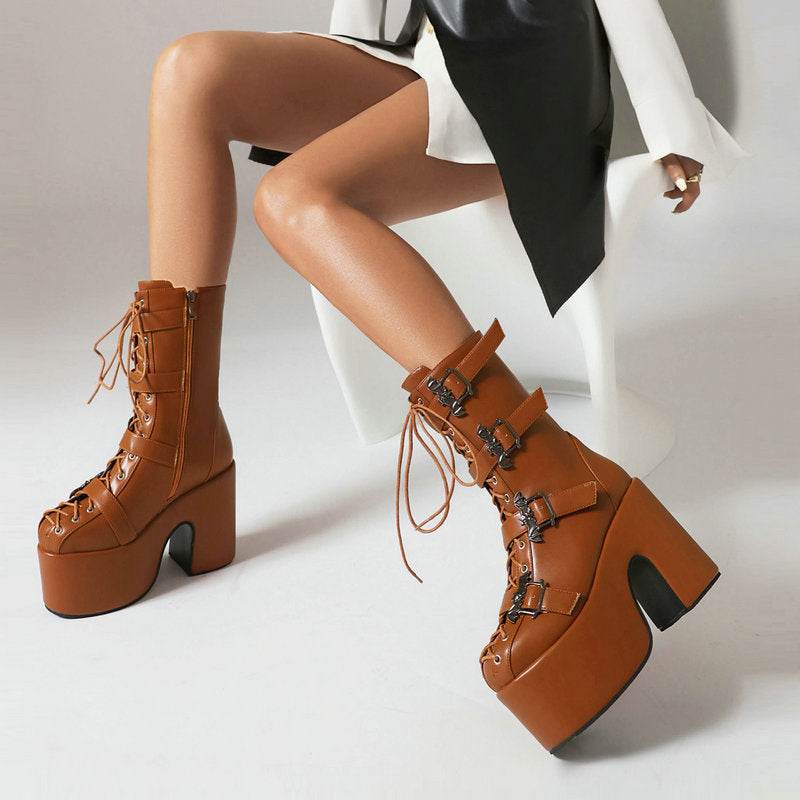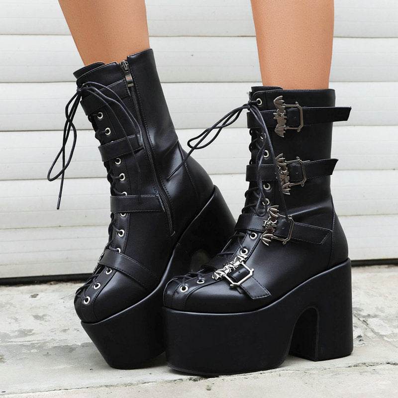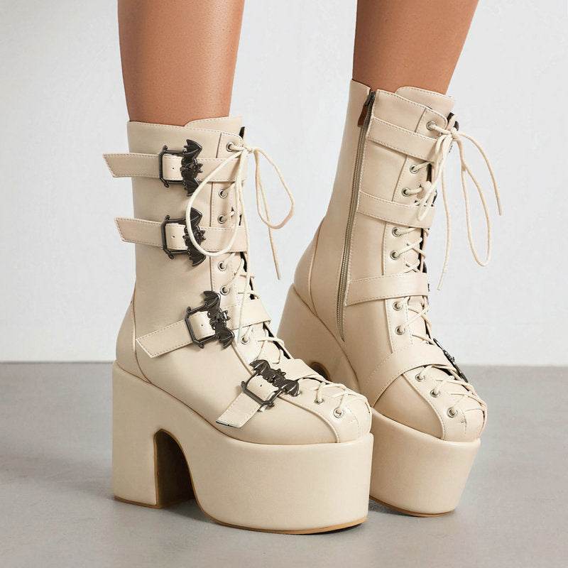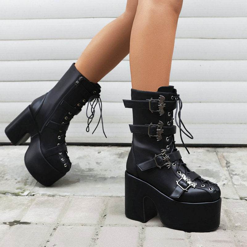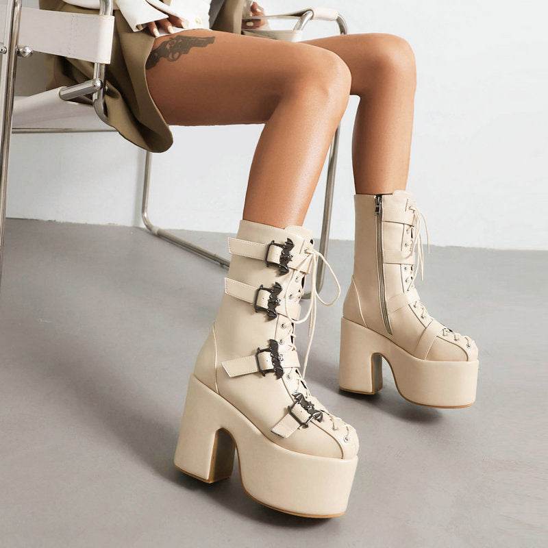 Hot Girl Punk Platform Martin Boots Women's Round Head Gothic Muffin Bottom Tall Knight Boots
