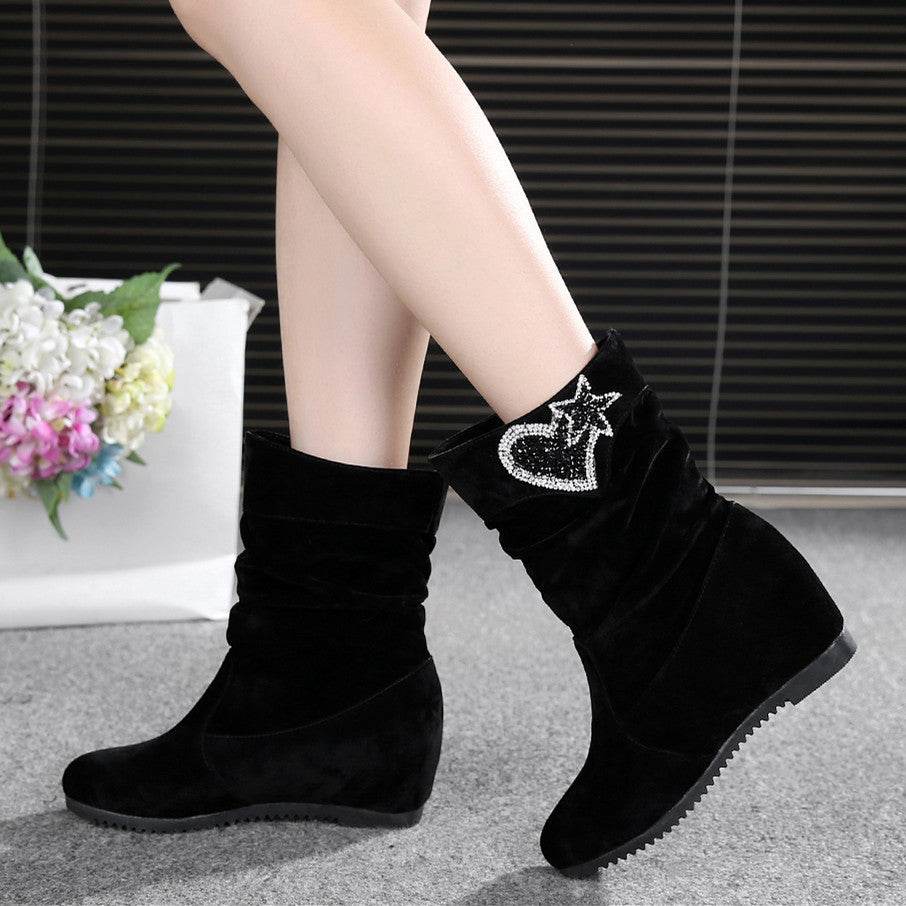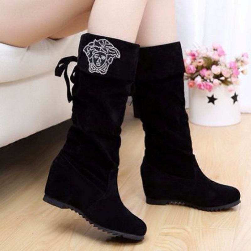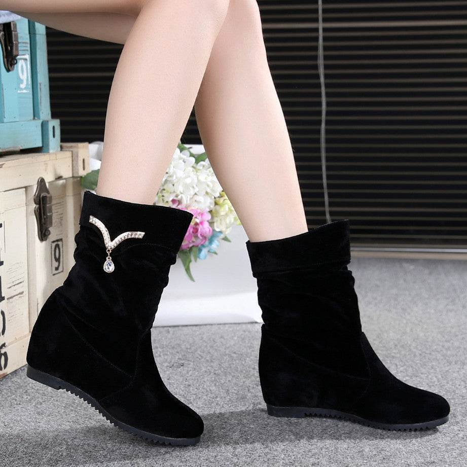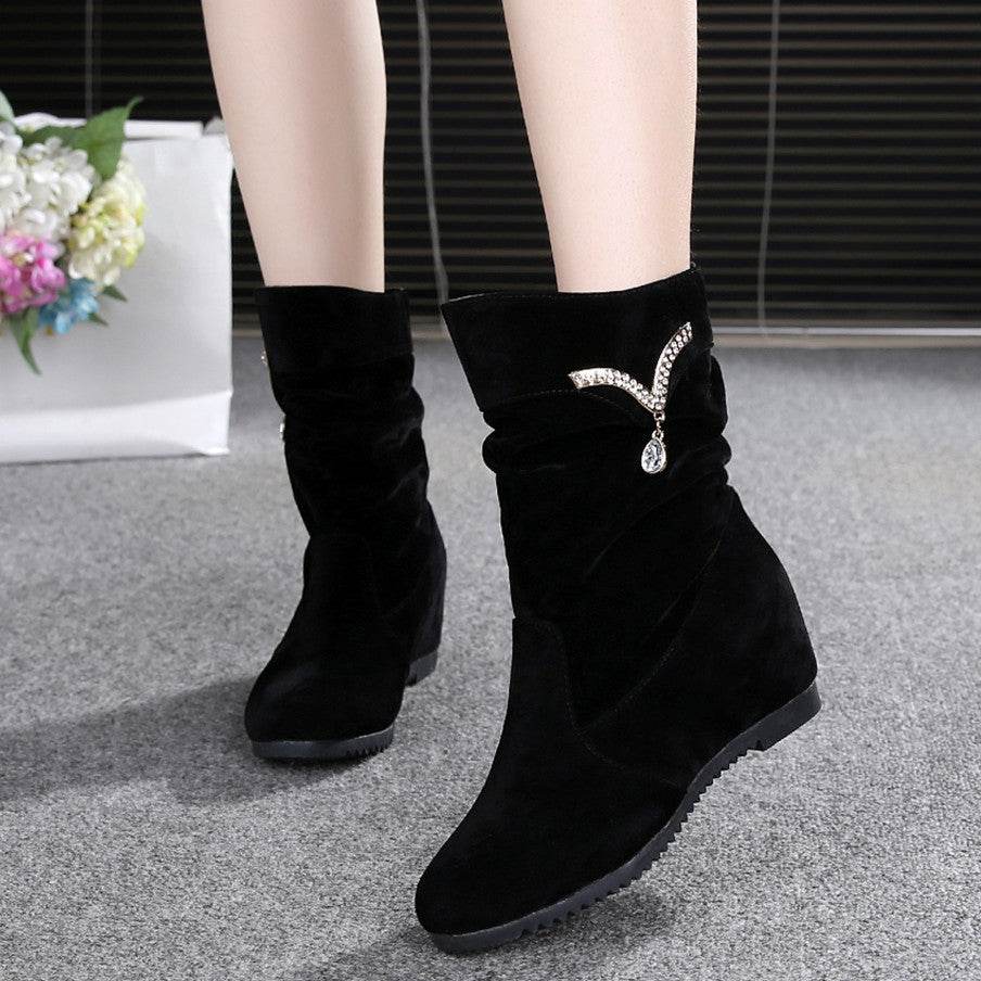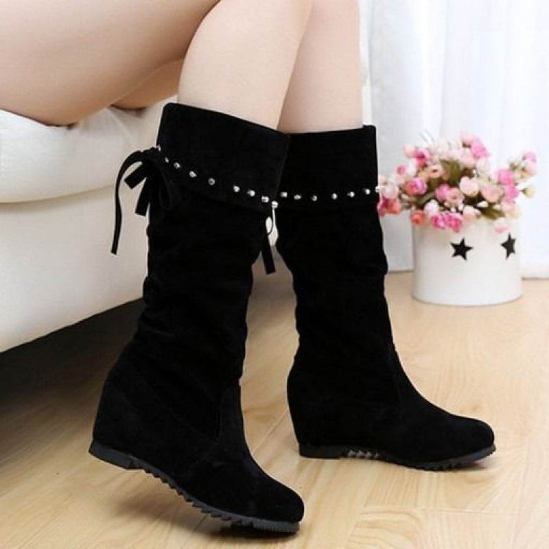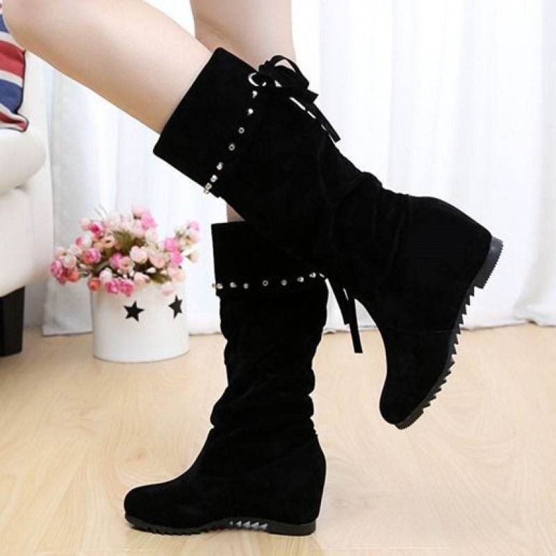 Women's Nubuck Wedge Long Suede Inner Booster Flat Tall Boots
