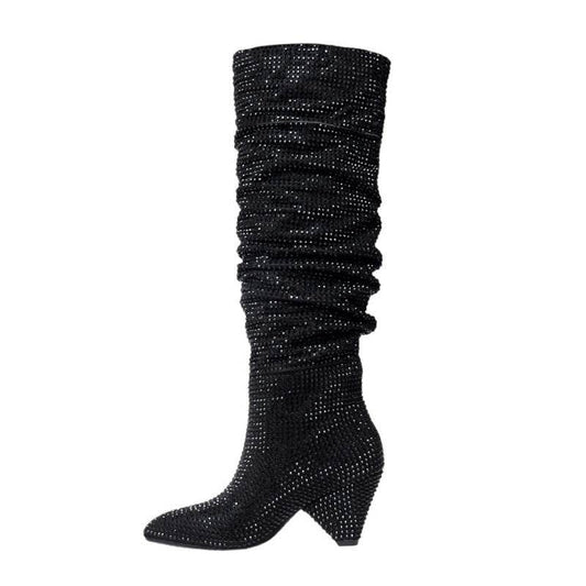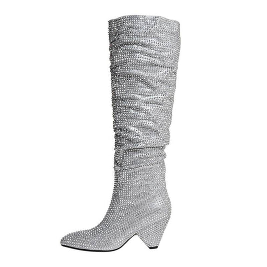 Tapered Heel Silver Rhinestone Tall Fashion Women's Boots - Mubimart