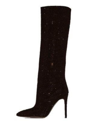 Women's Fashion Pointed Toe Stiletto Rhinestone Tall Boots - Mubimart