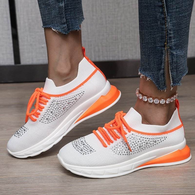 Summer New Style Rhinestone Casual Shoes Women Walking Shoes Socks Sports Shoes