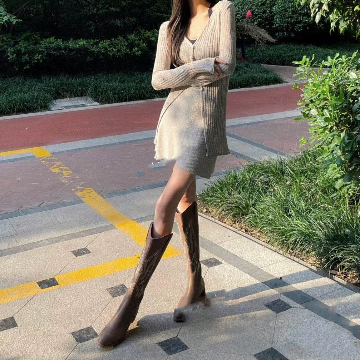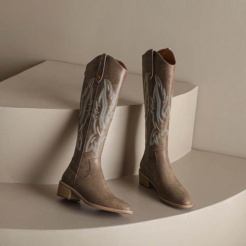 Retro Chunky Heel Embroidery Western Cowboy Boot Women