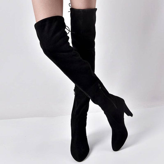 Pointed Toe Chunky Heel Over-the-knee Boots Springy Thigh Boot Women - Mubimart
