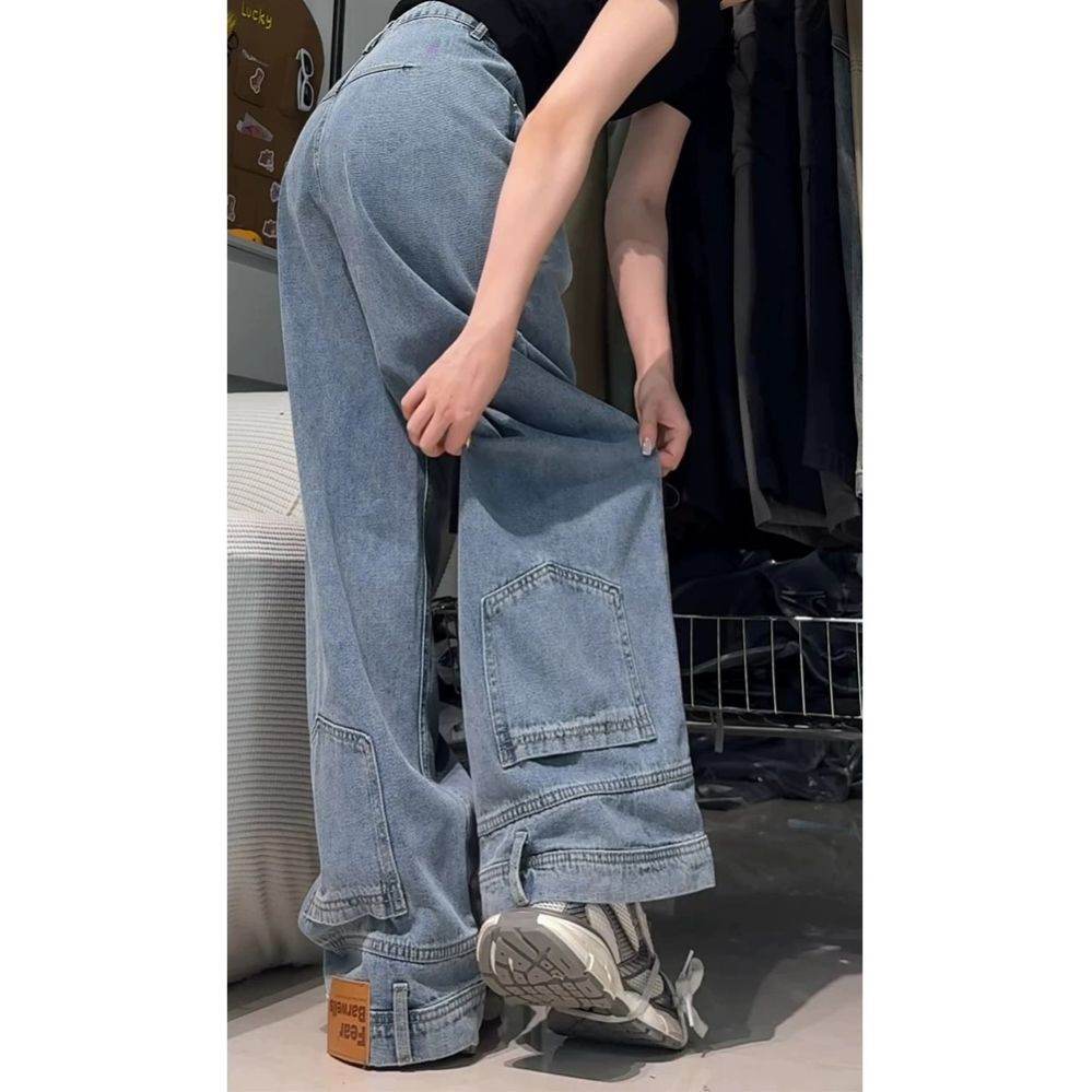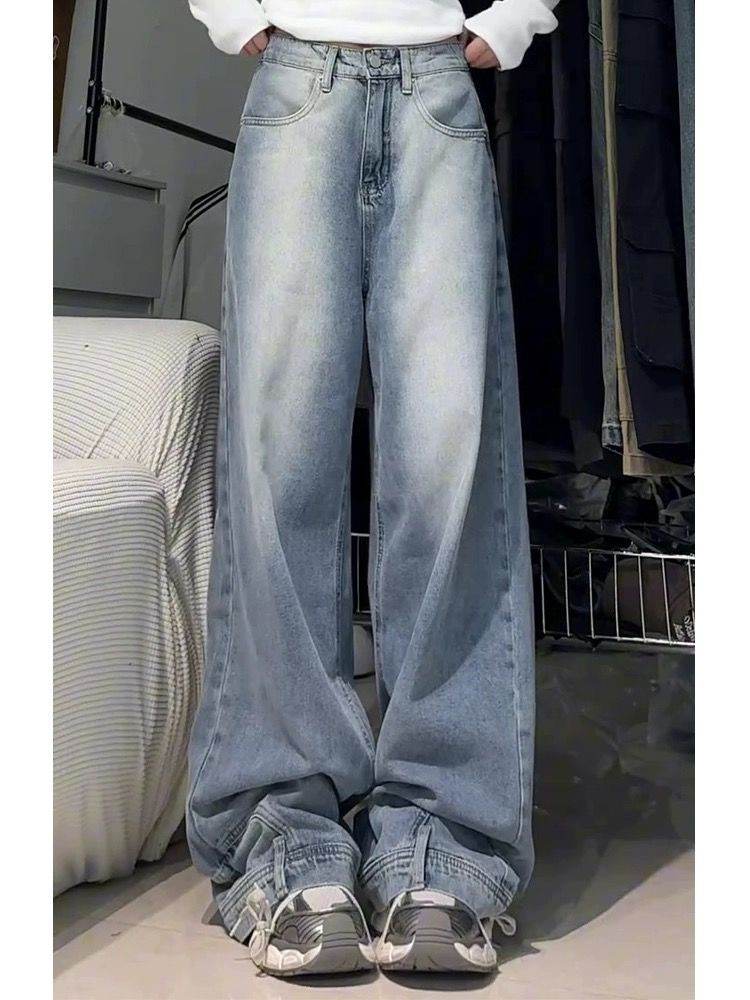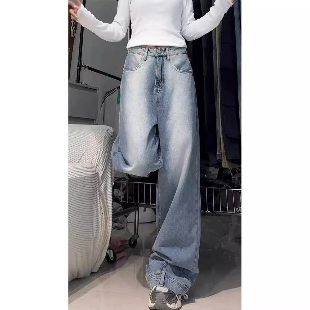Water Washed Retro Oversize Wide Leg Jeans For Women