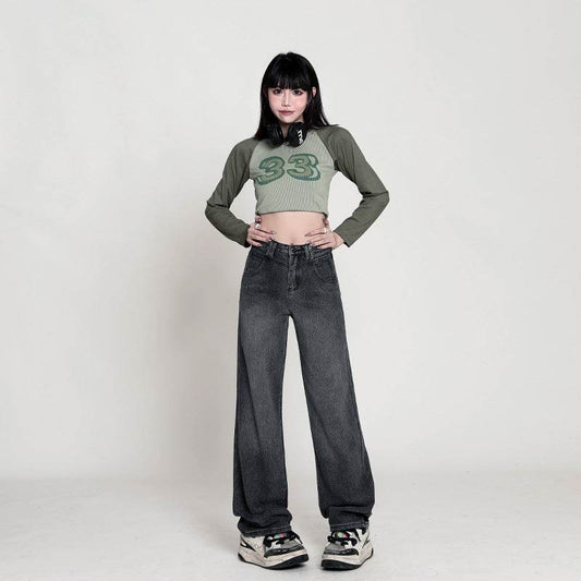 Blue XINGX Embroidered Jeans Women Loose Straight-leg Wide-leg Pants