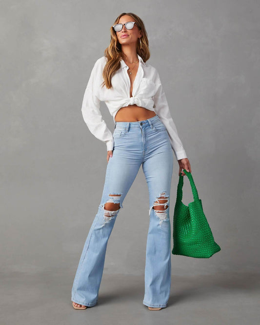 Elegant Ripped Wide-leg Jeans Women
