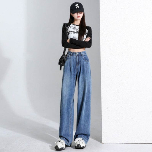 Retro High Waist Wide Leg Jeans For Women - Mubimart