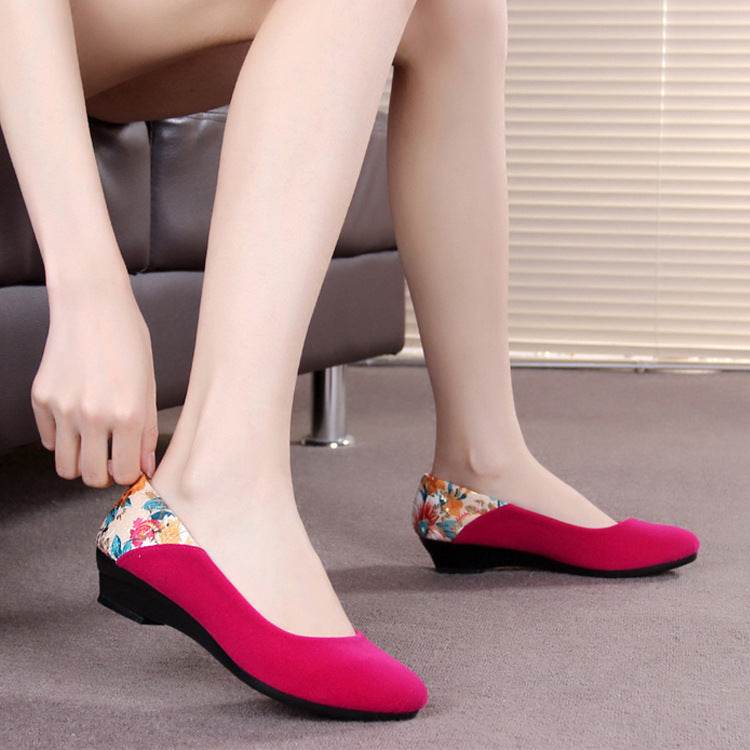 Cloth shoes wedge heel low heel work shoes soft bottom mother shoes