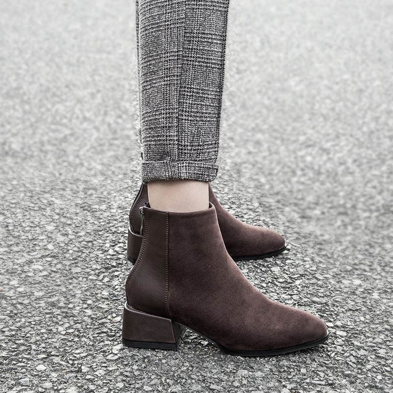 Retro Square Heel Pointed Toe Ankle Boots Fashion Versatile Chelsea Boot Women's Shoes