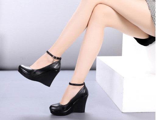 Authentic Leather Work Shoes Women's Black Non-slip Flat Work Leather Shoes