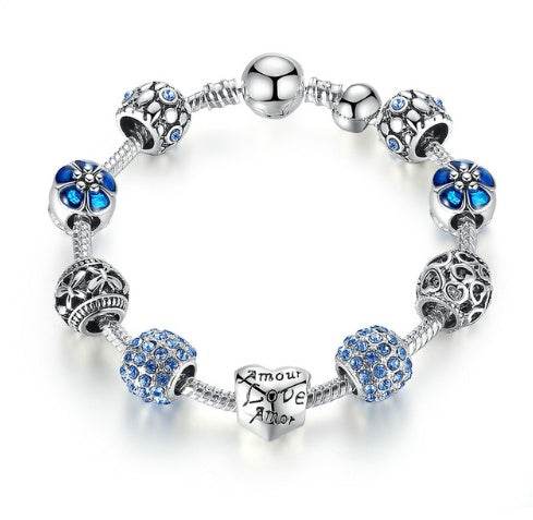 BRANDS SHOPPING WEEK Antique Silver Charm Bracelet & Bangle with Love and Flower Beads Women Wedding 4 Colors 18CM 20CM 21CM - Mubimart