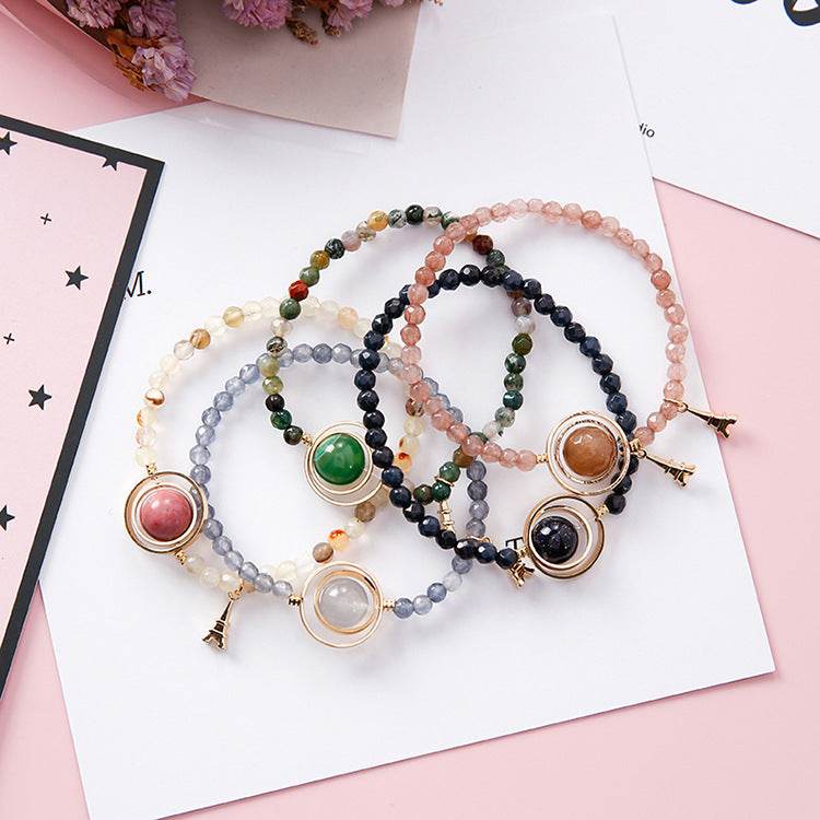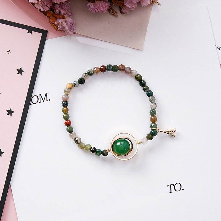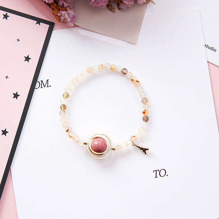 Sweet Simple Hollow Geometric Round Circle Crystal Beaded Tower Pendant Bracelet Bangle for Women Girlfriend