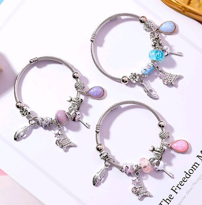 Feather Tower Adjustable Bracelet Crystal DIY Stainless Steel Bracelet National Wind Key Beaded Bracelet Women