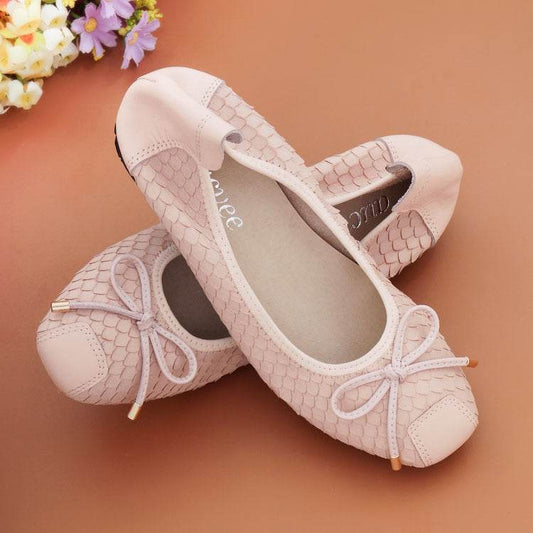 Egg Roll Women's Shoes Large Size Bow Single Shoes Women's Leather Boat Shoes