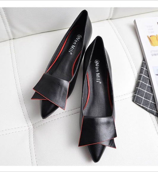 Pointed Single Shoes Female Low Heel Flat Bottom With Shallow Mouth Thick With Boat Shoes Scoop Shoes