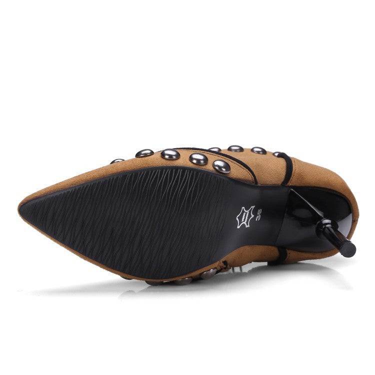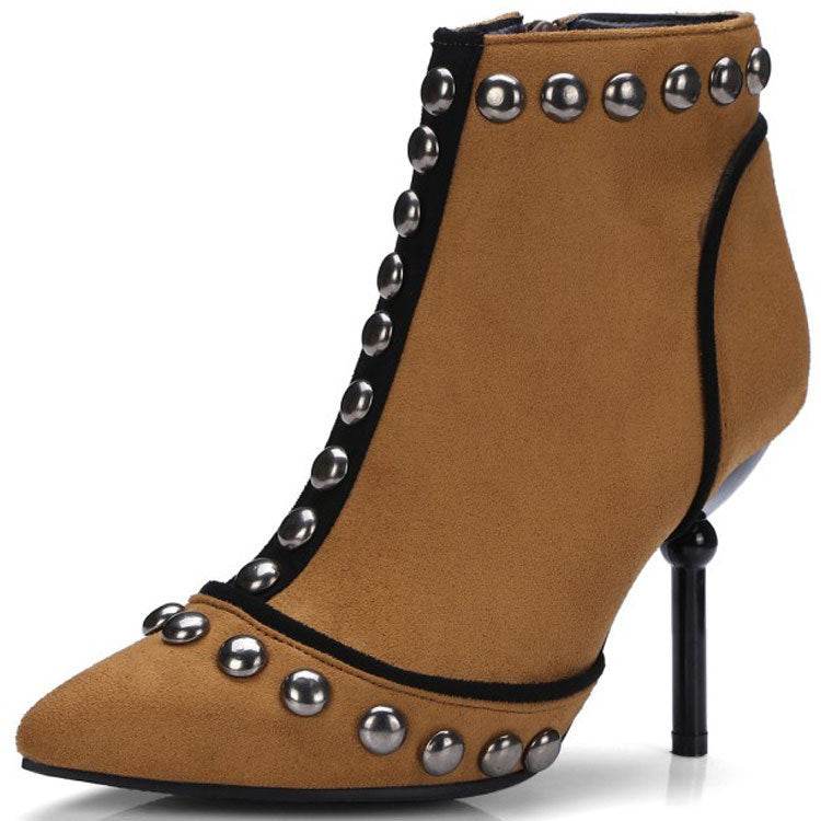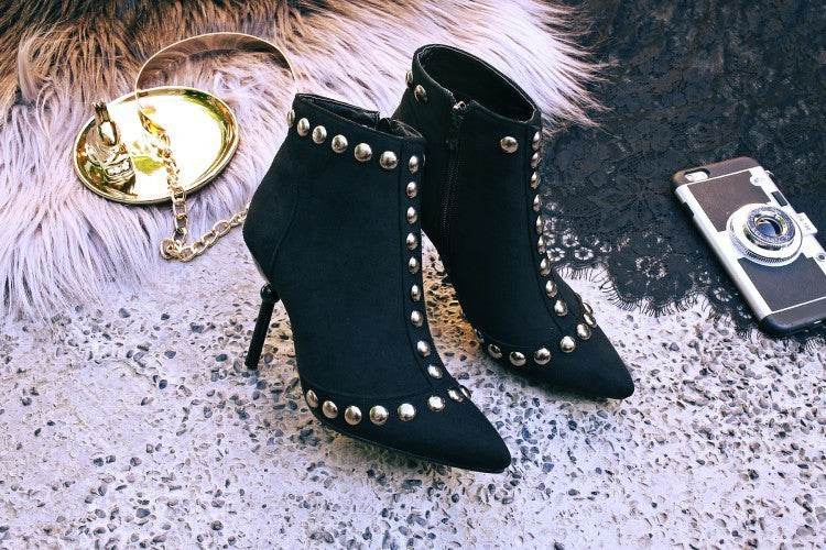 Studded high heel booties pointed